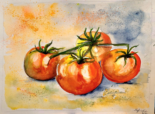 Watercolor, ´Bunch of tomatoes´, 24x32cm