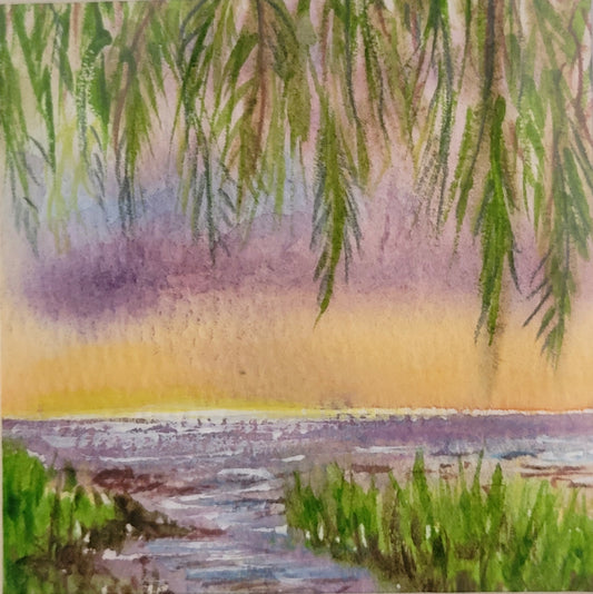 Watercolor ´Sunset under palm leaves´, 12x12cm