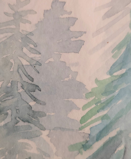 Watercolor ´Fir trees in the fog´, 13x18cm