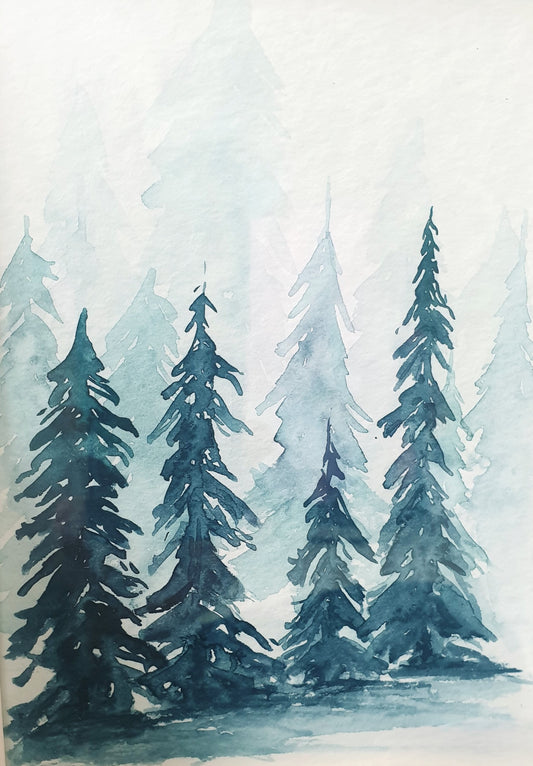 Sold outWatercolor ´Blue fir trees´, 13x18cm