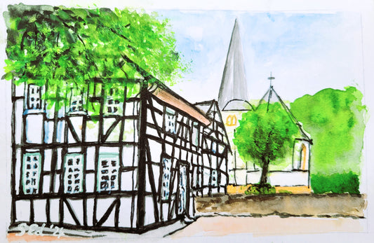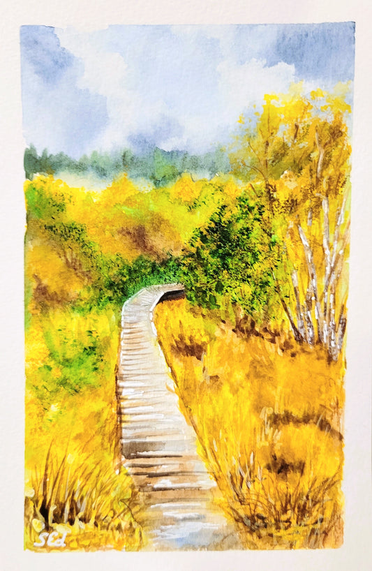 Watercolor ´Gorgeous hike in the country´, 13x18cm