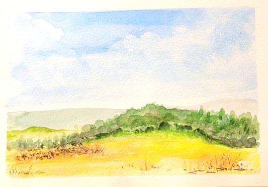 Watercolor ´Hiking over soft hills´, 13x18cm