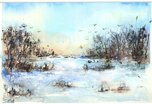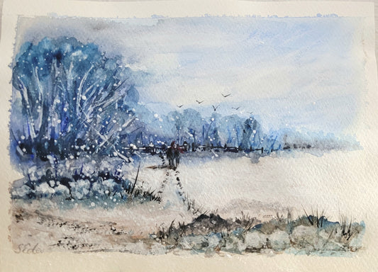 Watercolor ´Walk in the snow´, 15x21cm