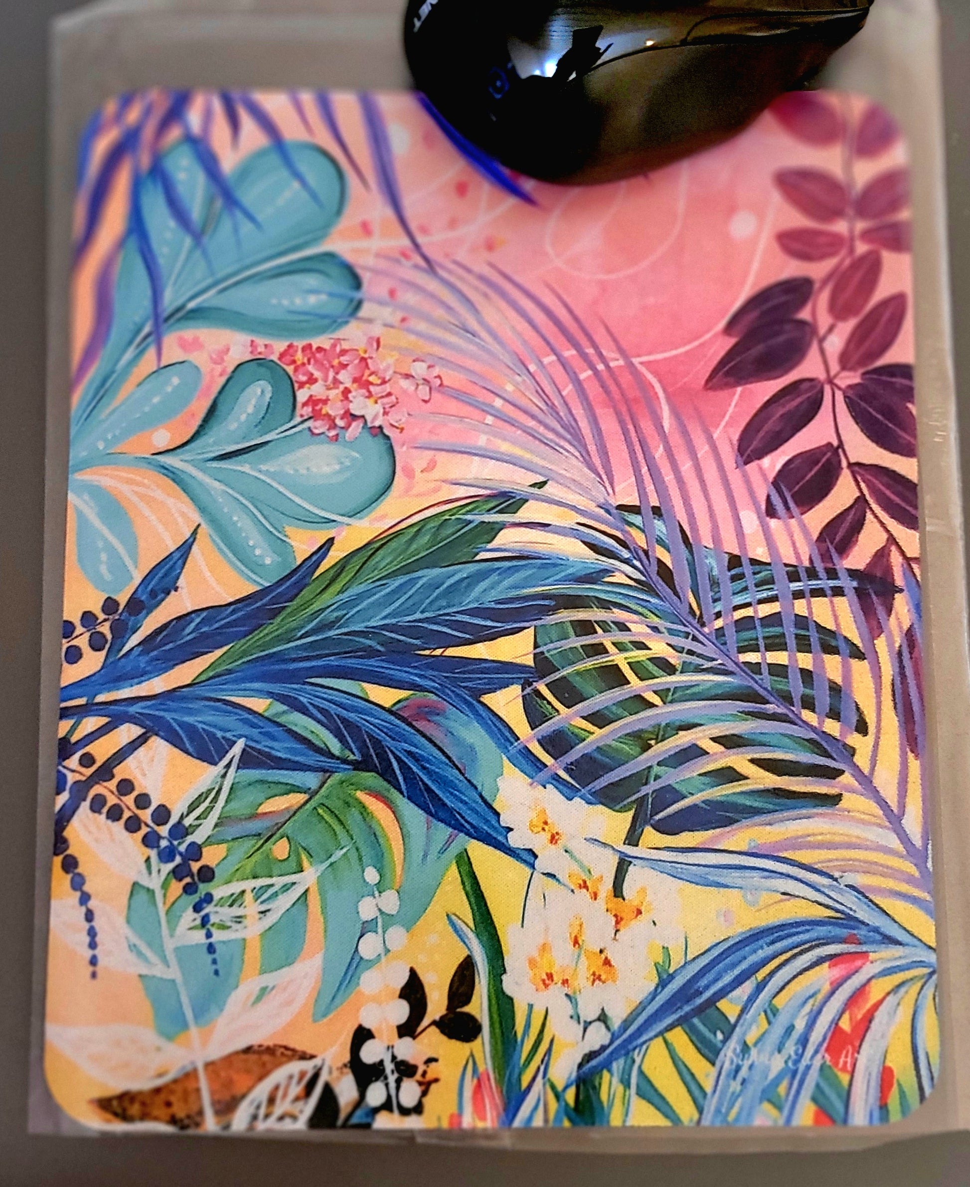 Elevate your desk with the fun and vibrant Mousepad ´Pink Jungle I´. This colorful 18x22cm mousepad features bright tropical leaves that will add a chic element to your workspace. Its unique design is perfect for adding a fun, yet stylish touch to your office.